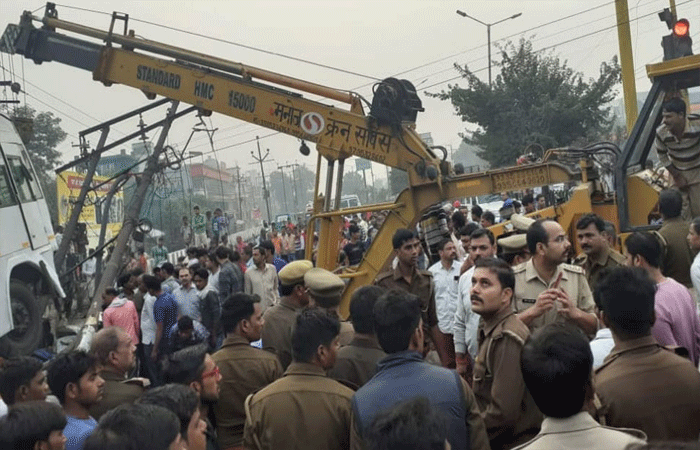 The bus was traveling from Loha Mandi area of Delhi to Faizabad in Uttar Pradesh. The accident happened at five o'clock this morning. On the divider a sleeping man used to sell Panamasala and run Gujran.