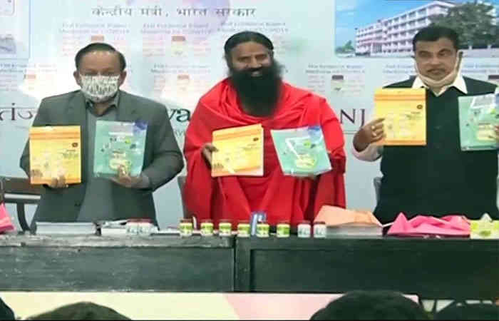 Yoga guru Baba Ramdev has launched one more drug to combat corona virus infection. Baba Ramdev announced the new drug at an event held at the Constitution Club in the national capital Delhi on Friday. Health Minister Harsh Vardhan and Union Road Transport Minister Nitin Gadkari were present on the occasion.
