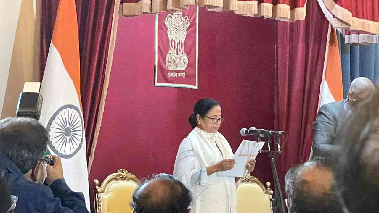 Mamata Banerjee has been sworn in alone and no minister has been sworn in with her. Mamata Banerjee and Governor Jagdeep Dhankhar were seen on stage during the program. The two joined hands and accepted the greeting.