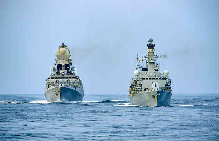 India and England are waging a three-wing war game in the Arabian Sea and thereby intensifying complex military operations.